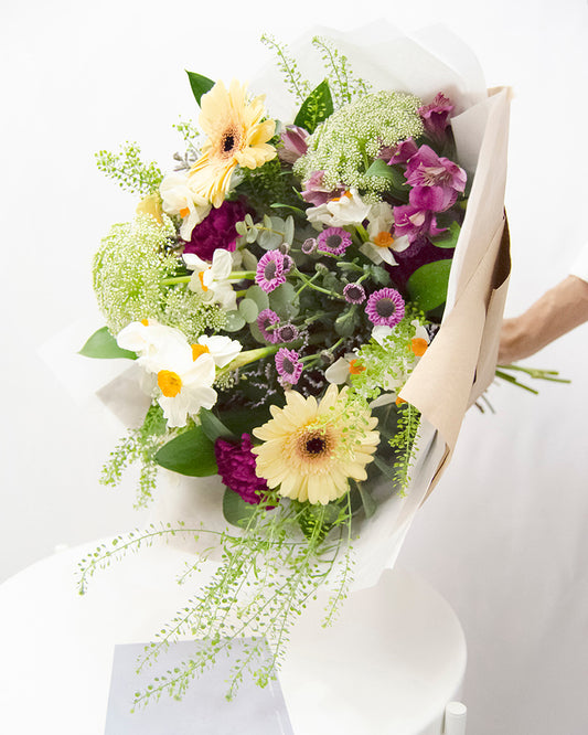 Prepariamo una selezione di bouquet con una breve descrizione della loro gamma di colori e delle sensazioni che suscitano in noi. Quando sceglierai un bouquet, speriamo che questo ti aiuti ad ispirarti in quel momento che vuoi conservare come un bel ricordo.